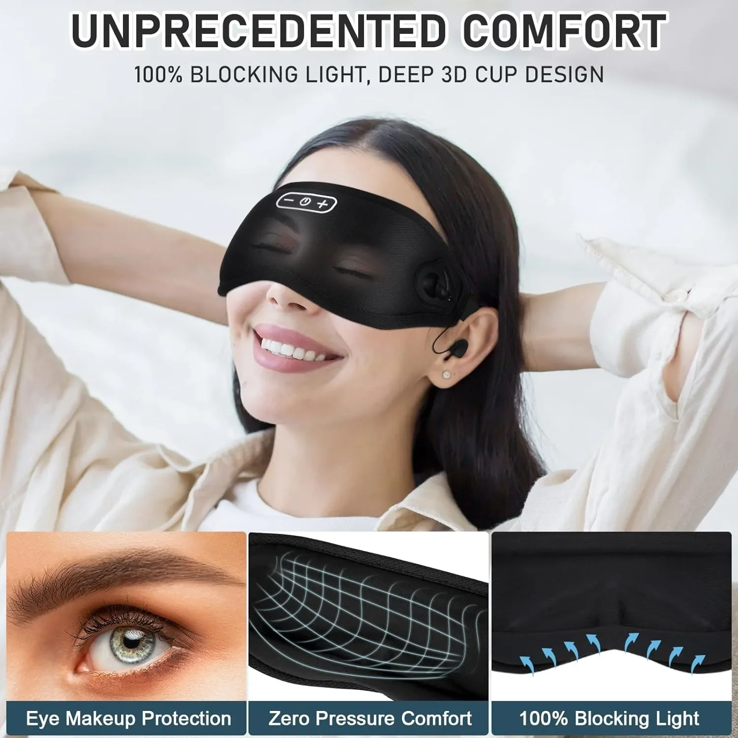 Bluetooth 3D Sleep Eye Mask with Sound Insulation and Earplugs for Noise Reduction and Full Shading Soothing the Eyes